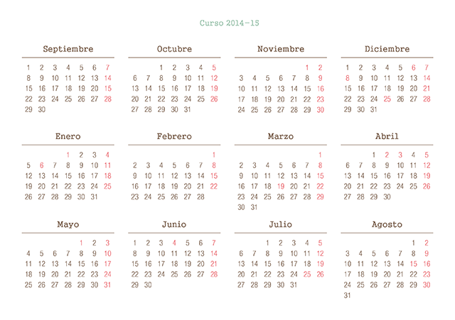 Primera página: un calendario con el curso a la vista, básico para organizar a largo plazo.